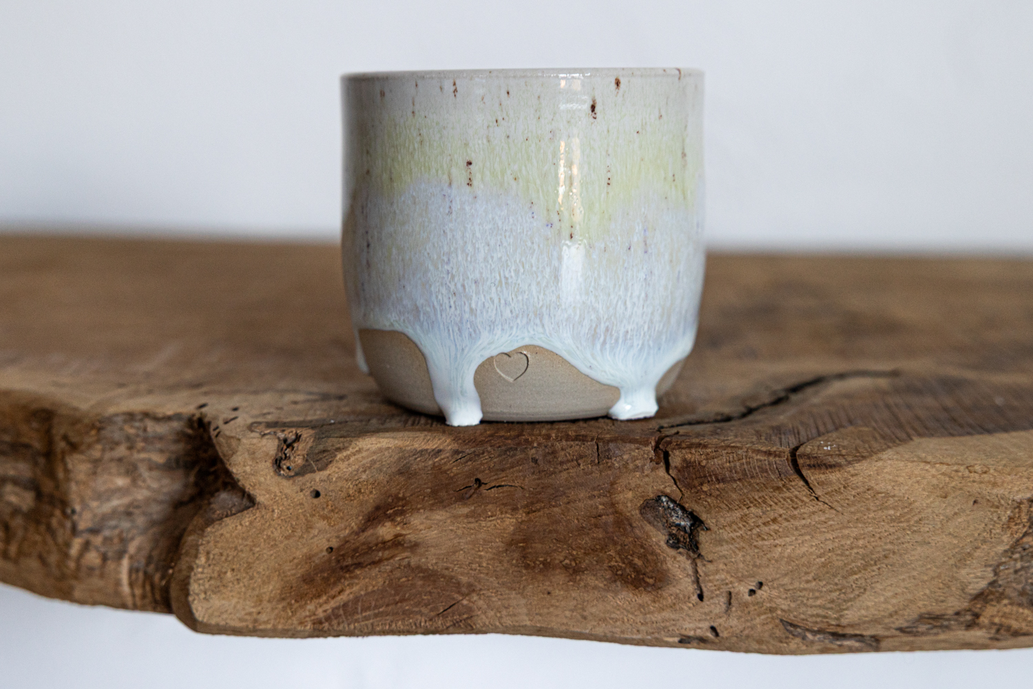 Becher mit weiß-gelben Glasur.