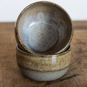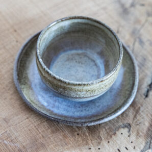 Schale grau und einer beige-glänzenden Glasur.