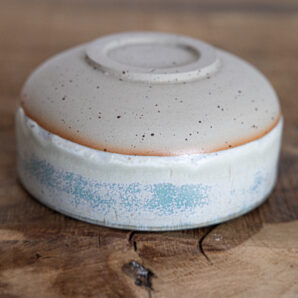 Im unteren Drittel ist die Schale unglasiert, darüber und innen glasiert.