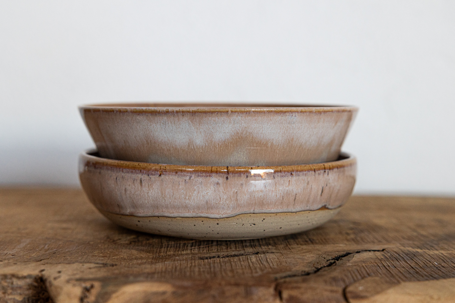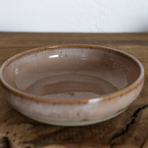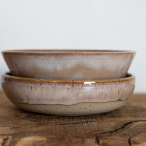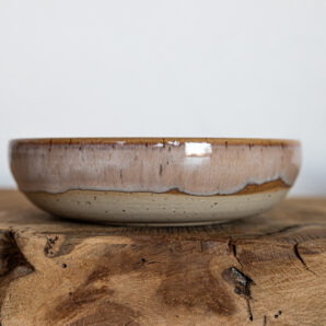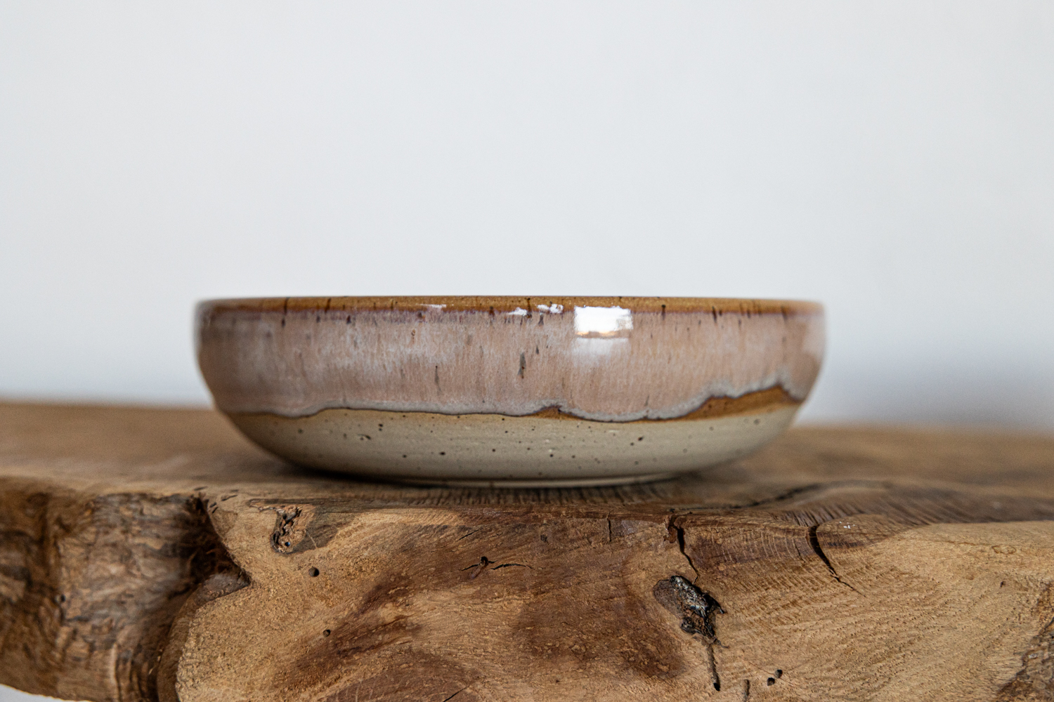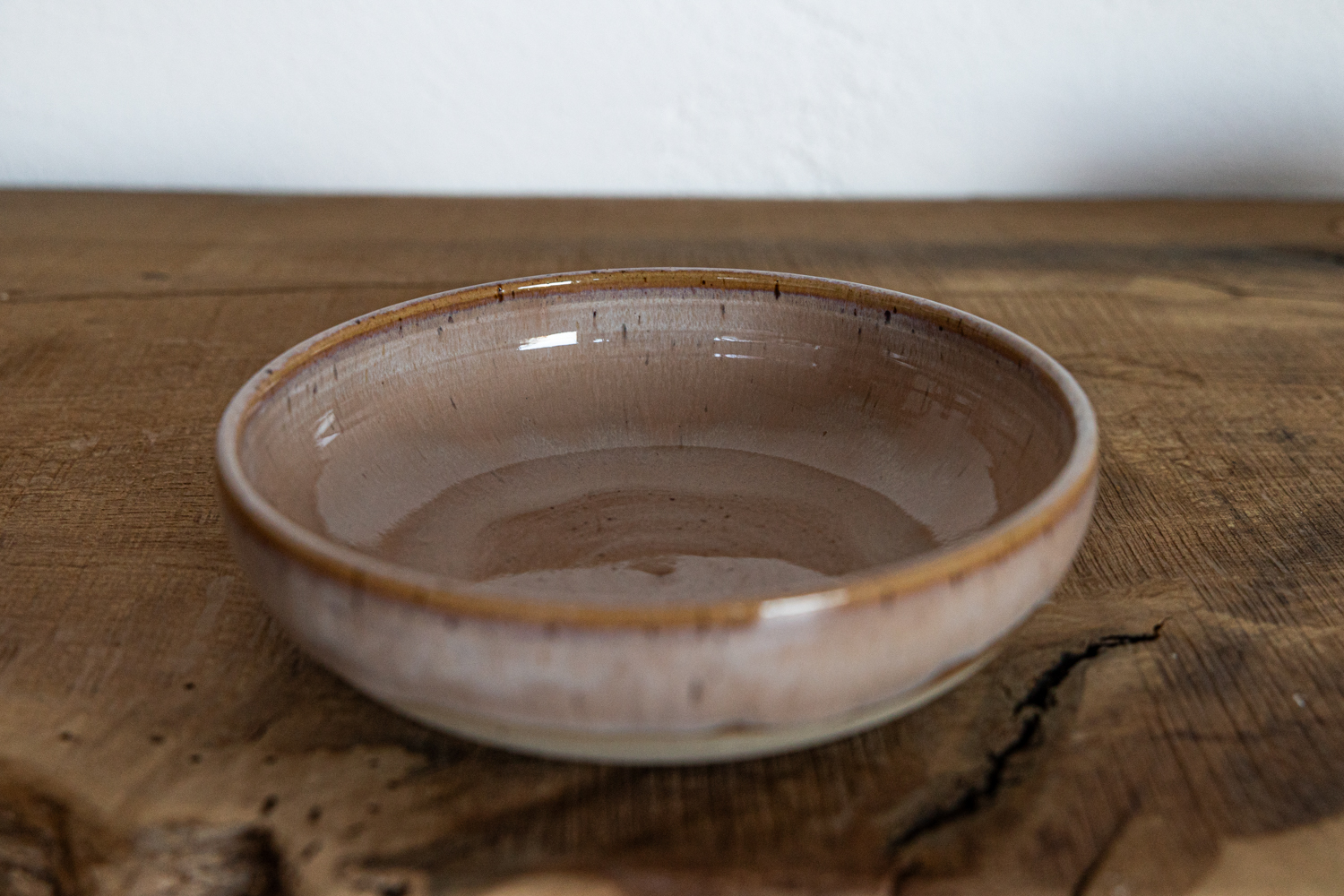 Schüssel hell mit rosa-weißer Glasur mit Farbverlauf.