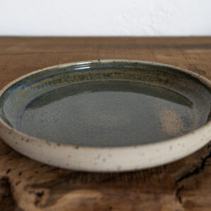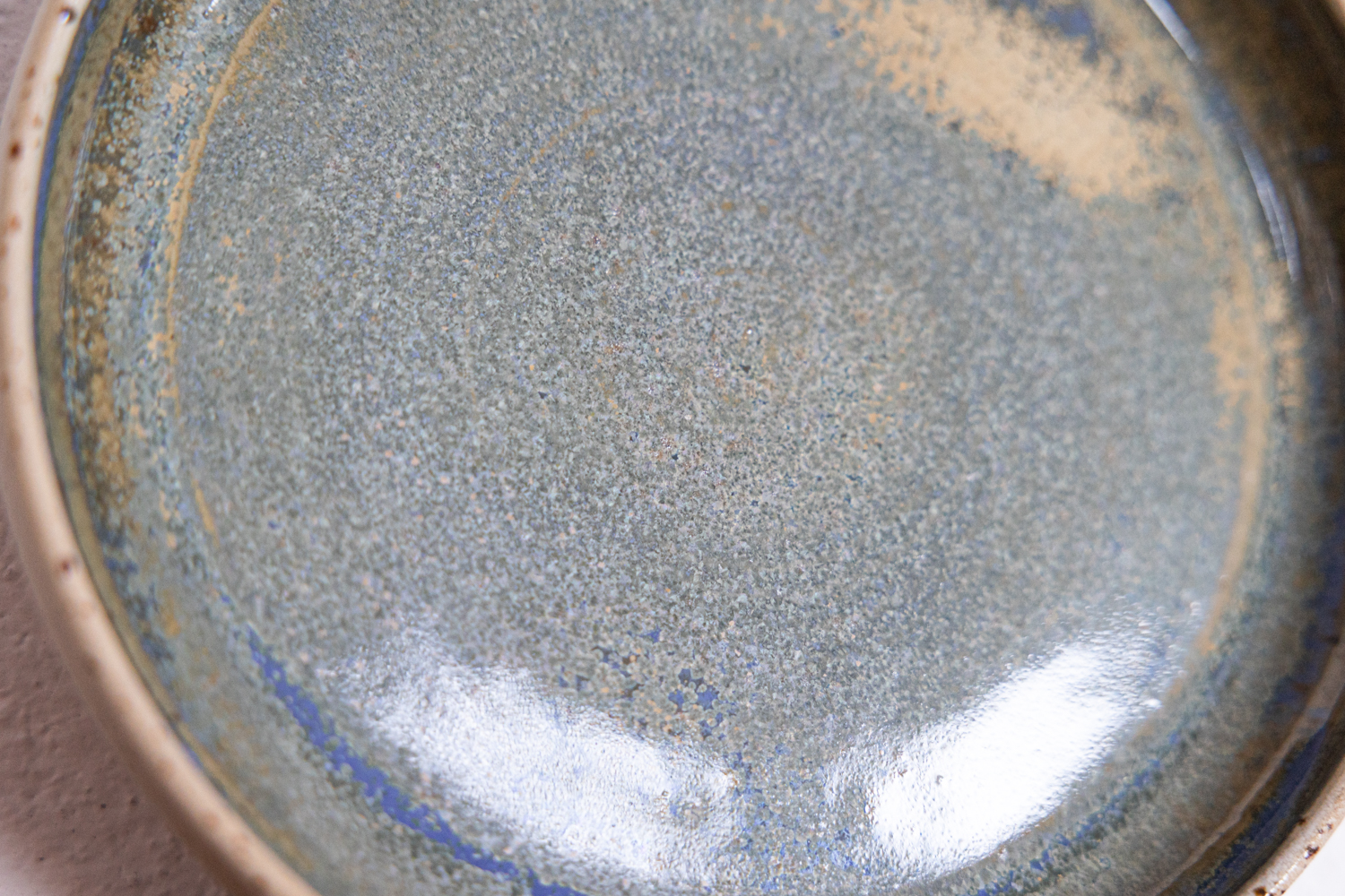 Tieferhell mit Punkten und einer grün-blau-goldenen Glasur.